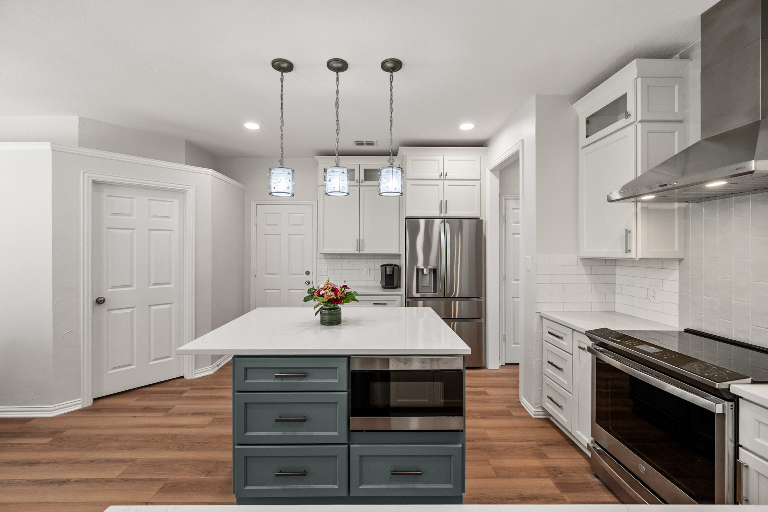 Minimalist Kitchen Remodel with a Custom Slate-Blue Island...