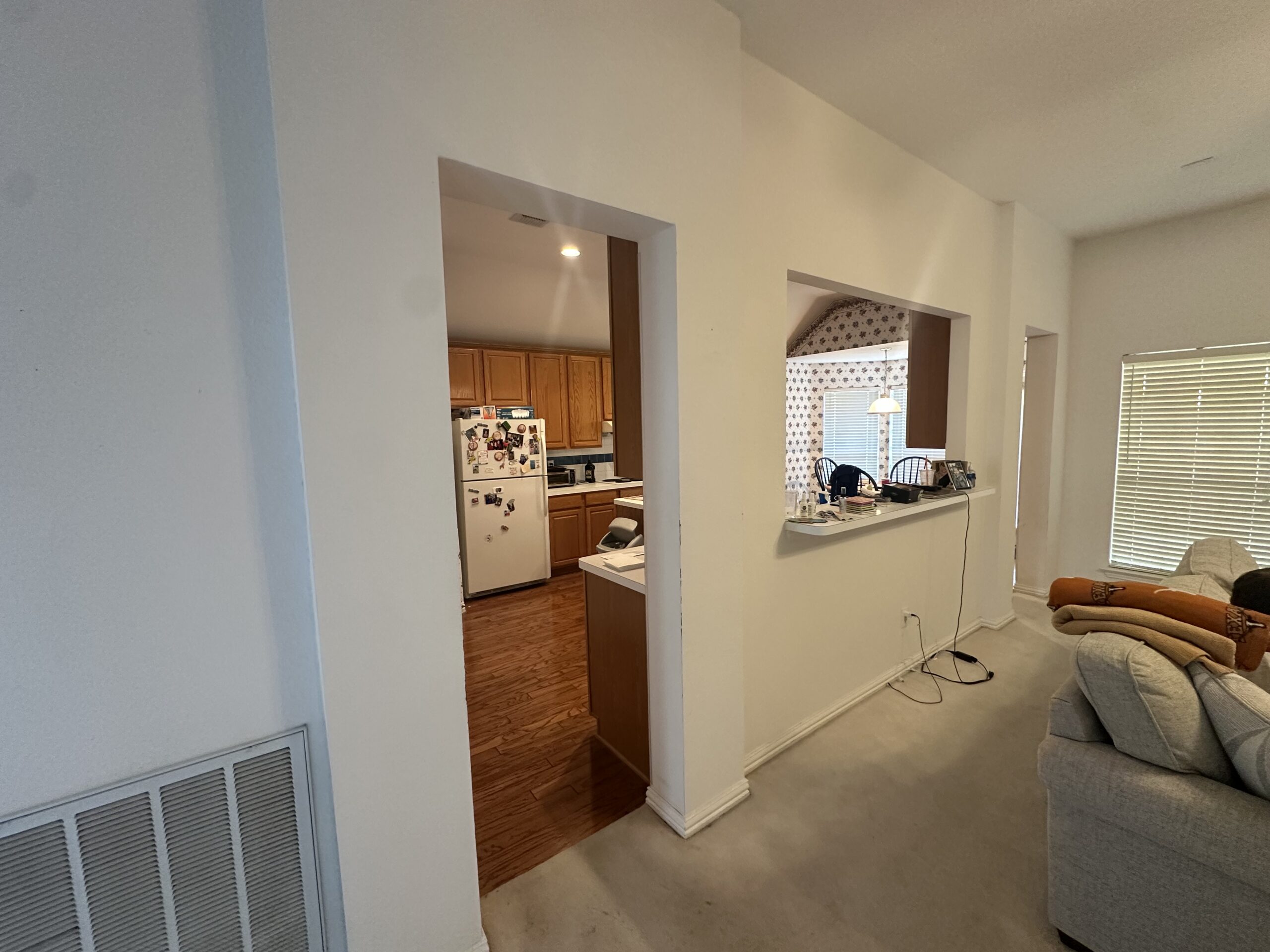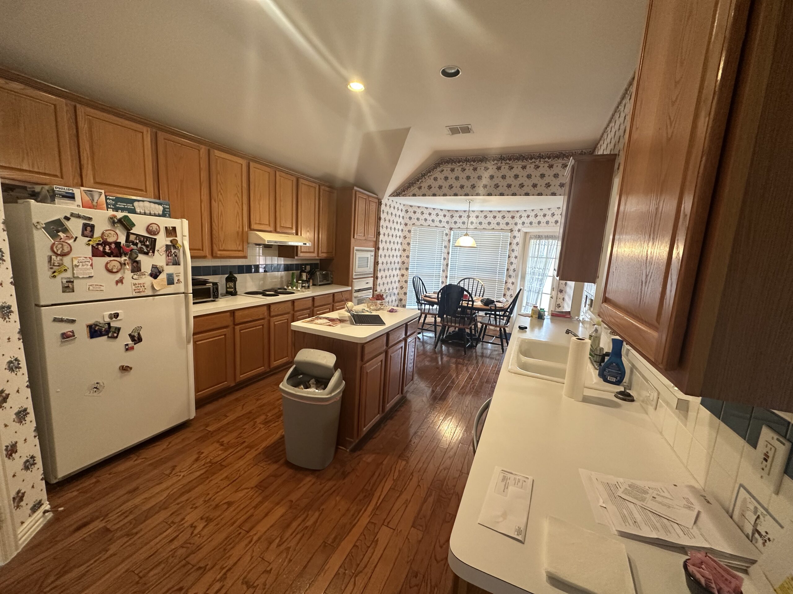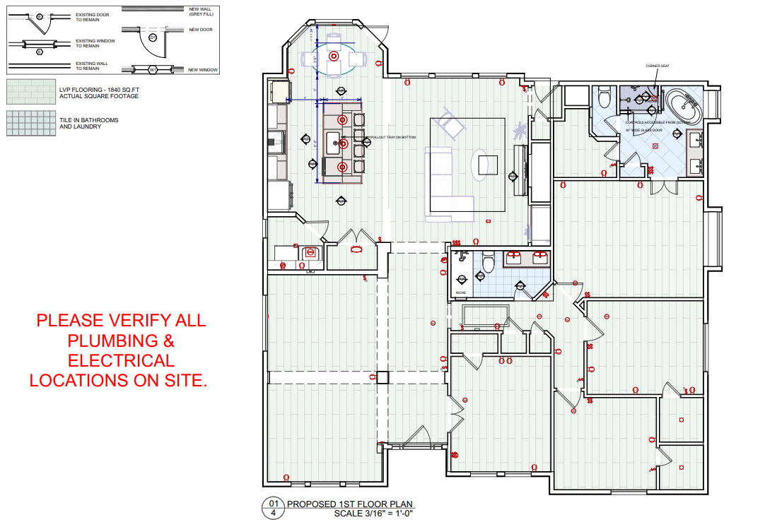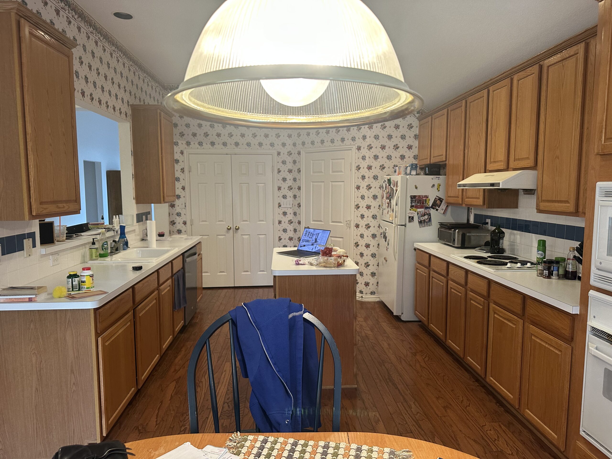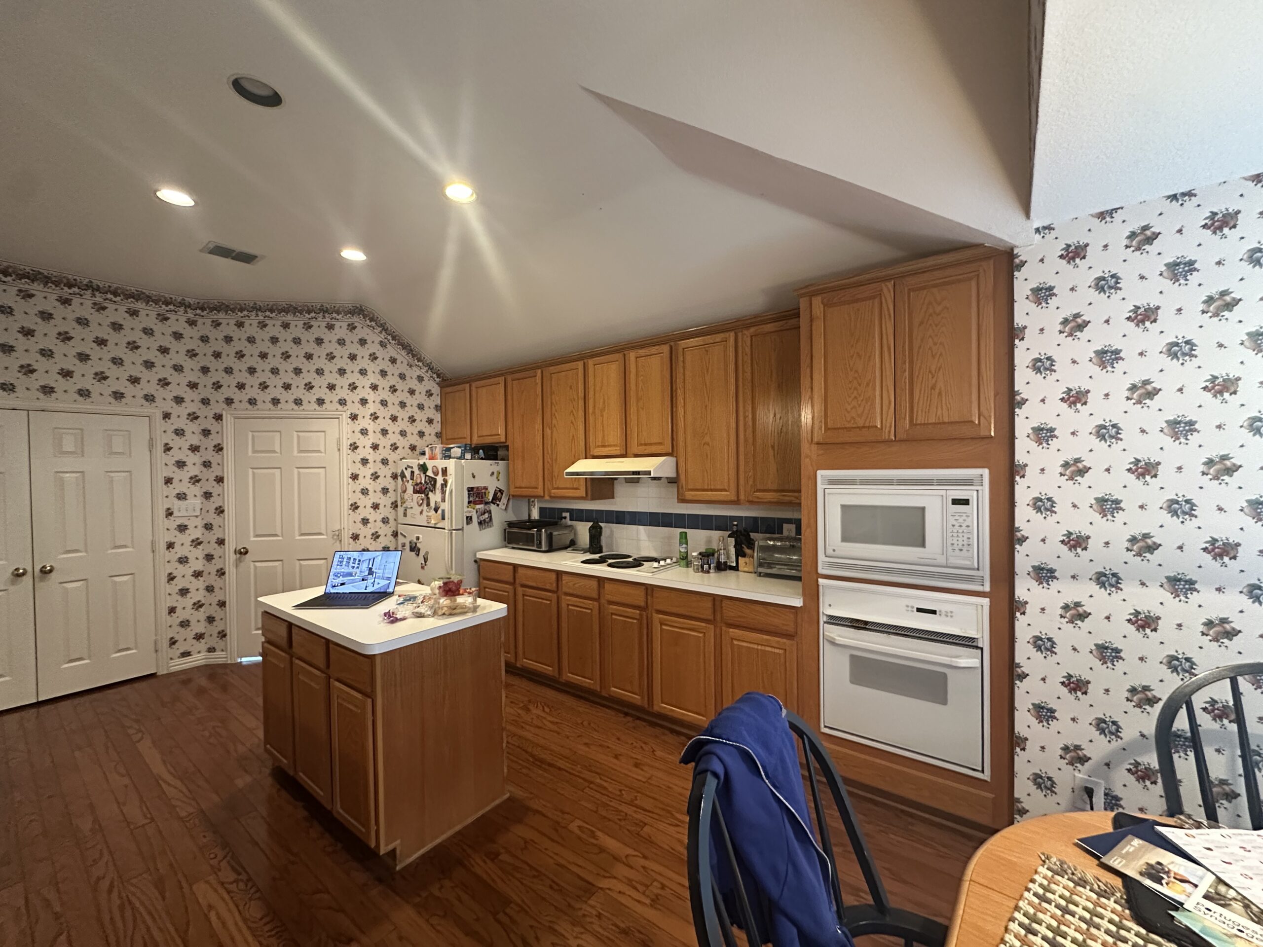 This comprehensive whole-house remodel showcases a sophisticated blend of modern functionality and transitional style. Led by the expert design team at Sunday Morning Kitchen and Bath, the project features a stunning kitchen anchored by a midnight blue waterfall island, professional-grade appliances, and custom mosaic accents. Two bathrooms were fully reimagined, highlighting a mix of warm oak textures, bold patterned tiling, and a luxury master suite complete with a freestanding soaking tub and frameless glass shower.