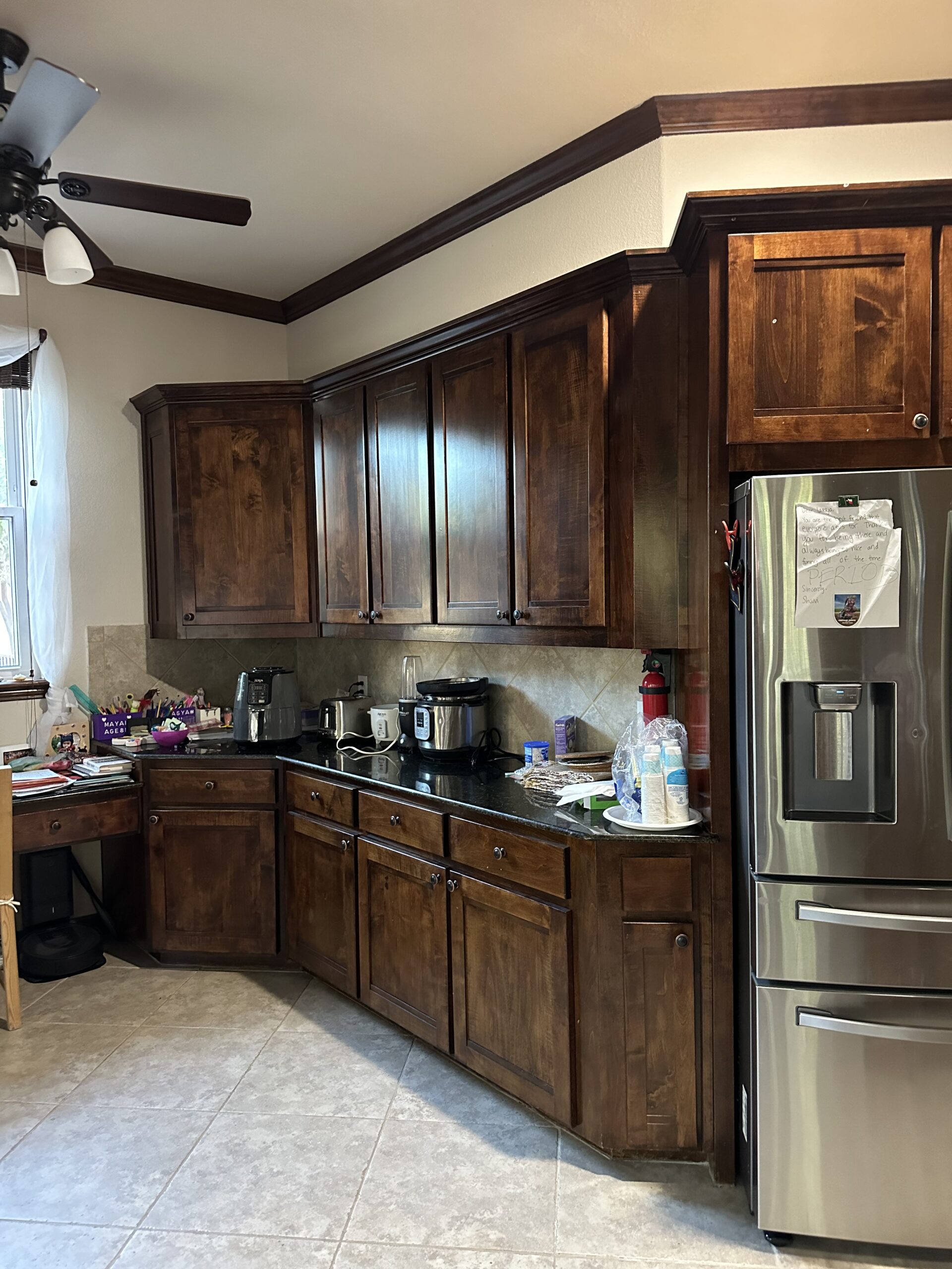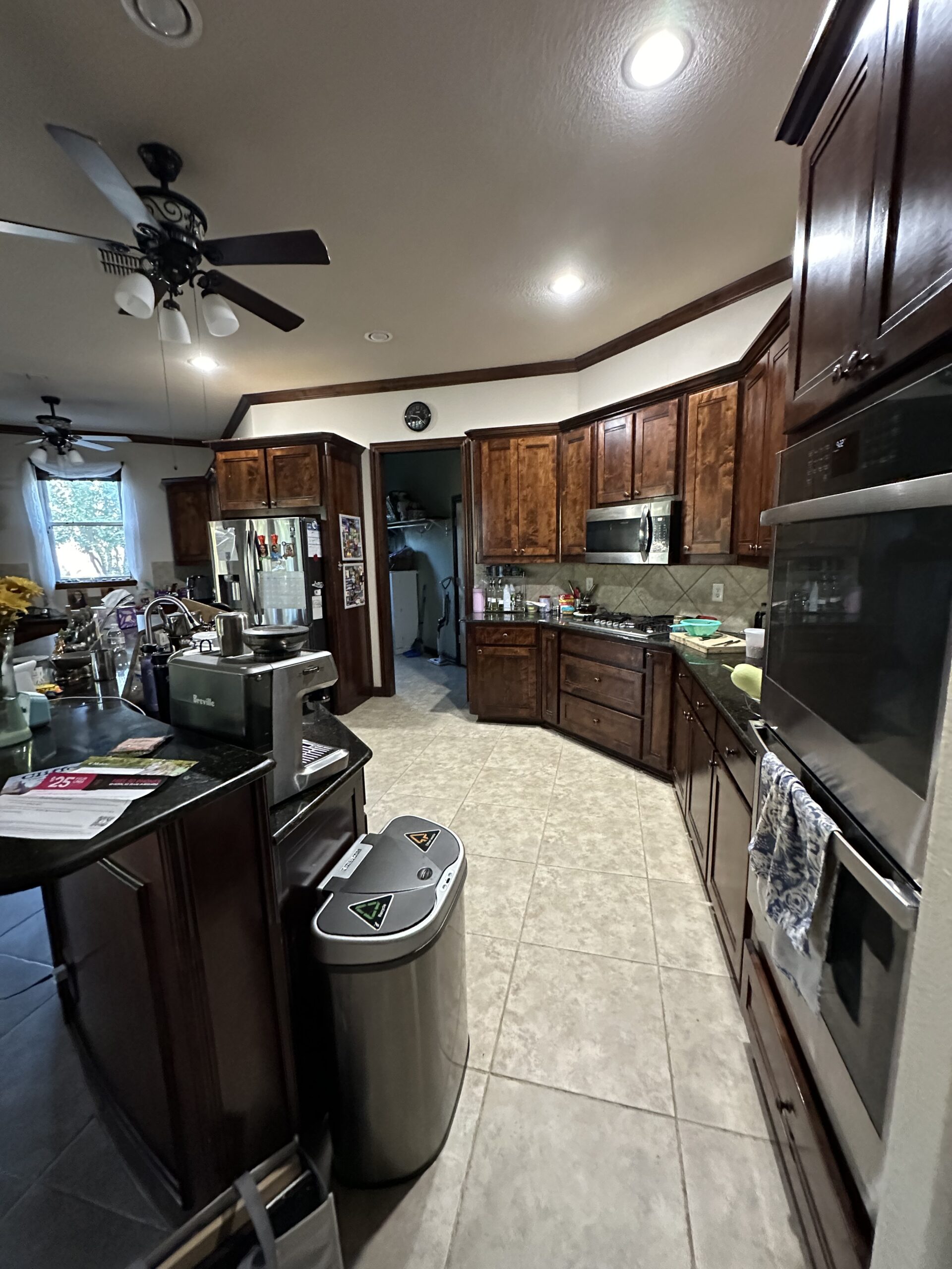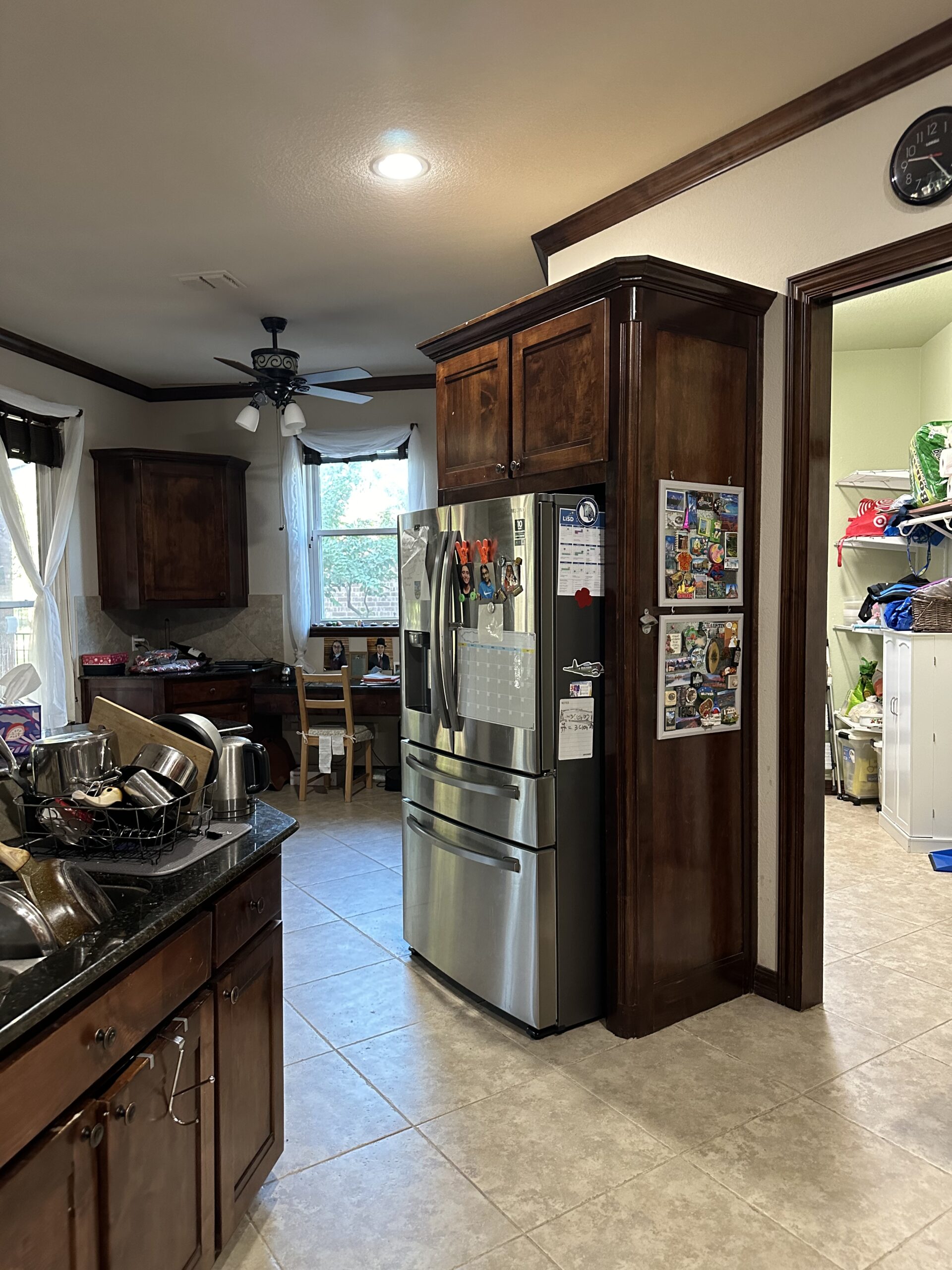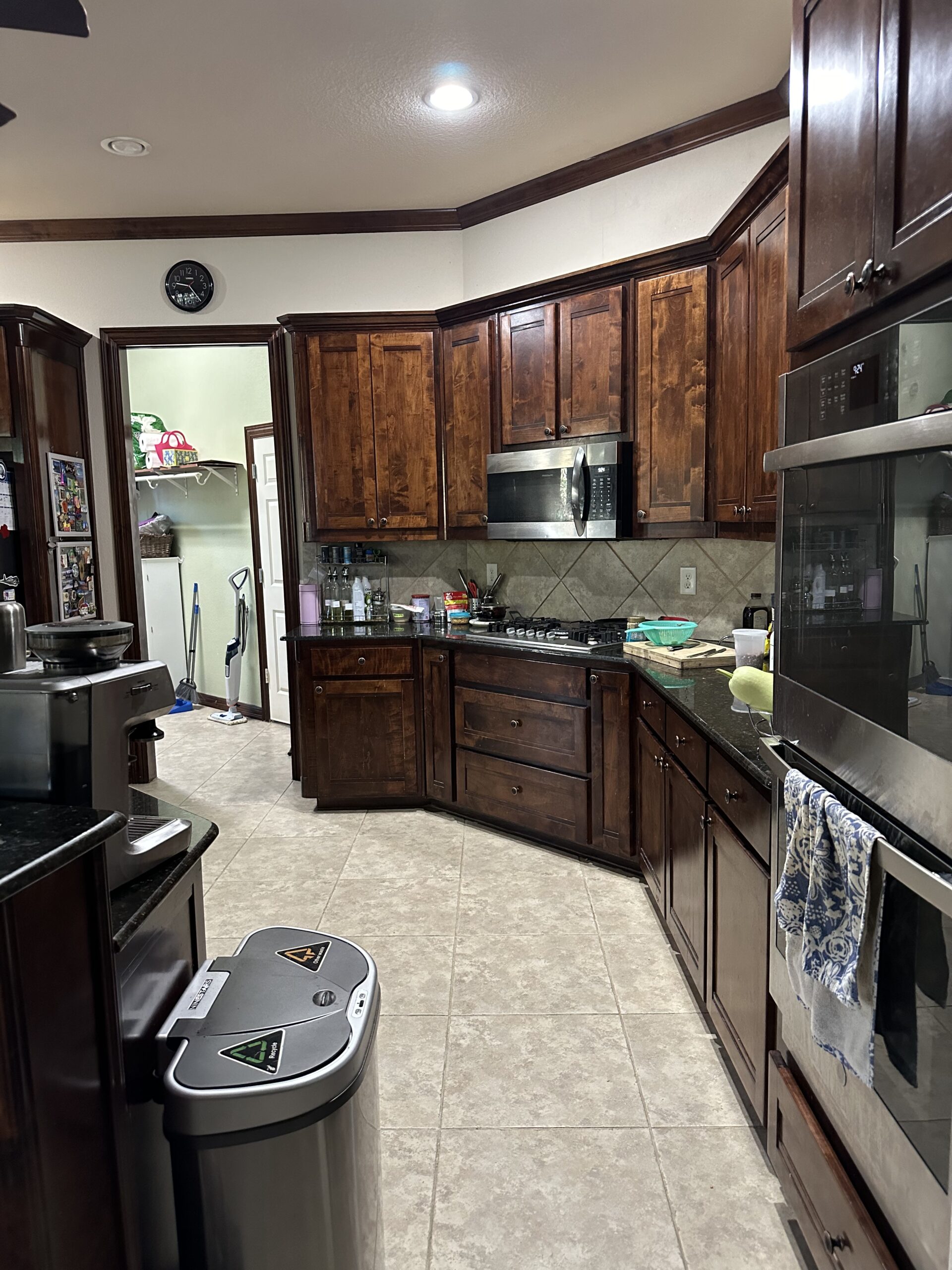 Guided by the homeowner’s vision for a bright, open, and highly functional space, this remodel transforms a heavy Mediterranean layout. Crisp white shaker cabinetry creates an airy backdrop, while a custom curved island with vertical white oak tambour panels adds warmth, texture, and sculptural movement. Every detail, from the integrated appliances to the architectural lighting, was intentionally selected to create the effortless “visual exhale” the homeowners desired.